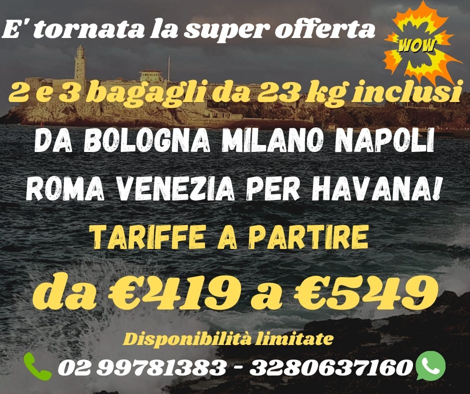 Arrivate offerte Cuba con 3 bagagli da tanti aeroporti Italiani