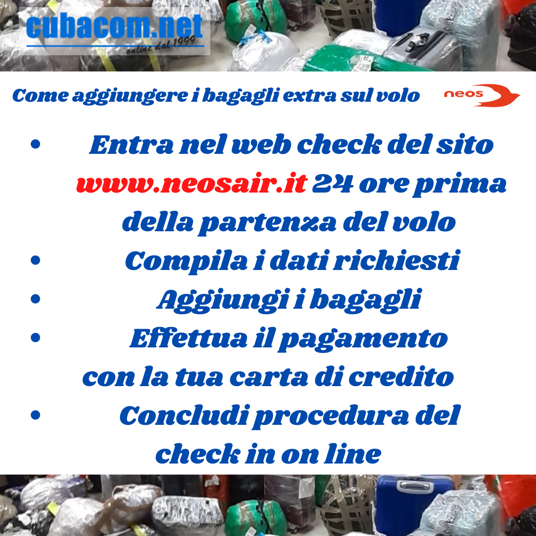 Come aggiungere un extra bagaglio dal sito Neos?