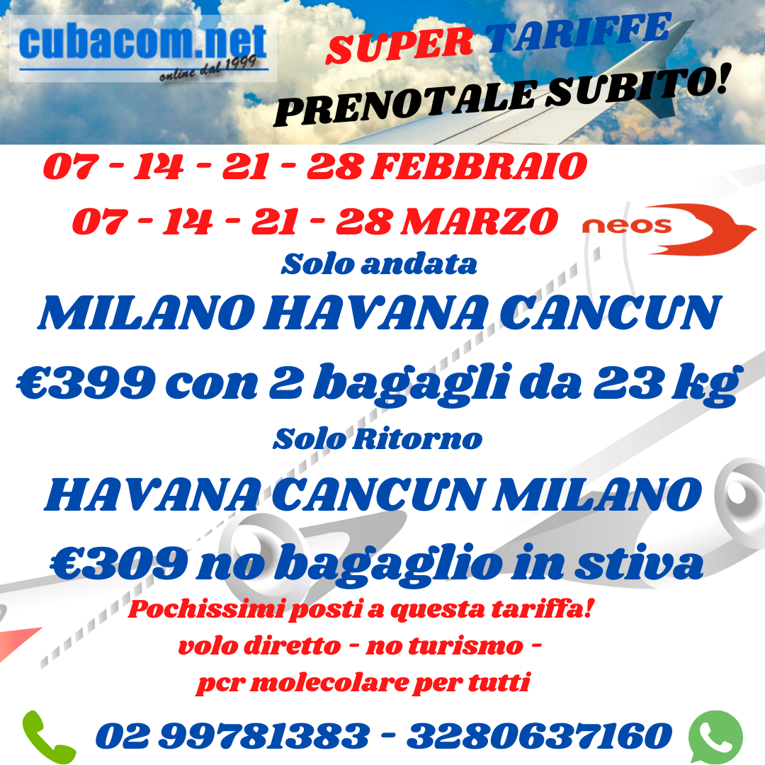 Prenota con noi Neos Milano Roma Havana a novembre super tariffe!